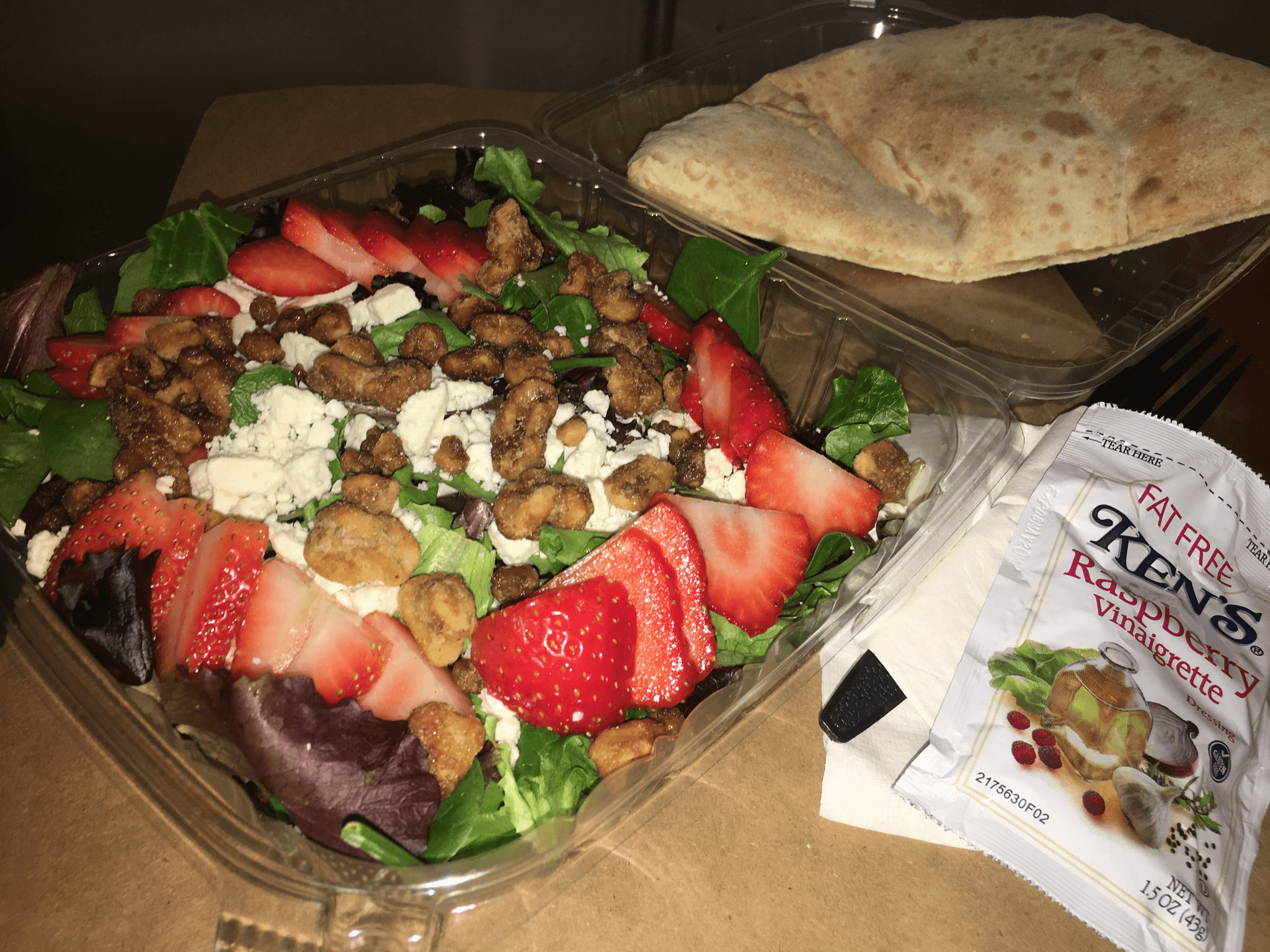 Spring mix, candied walnuts, feta and strawberries